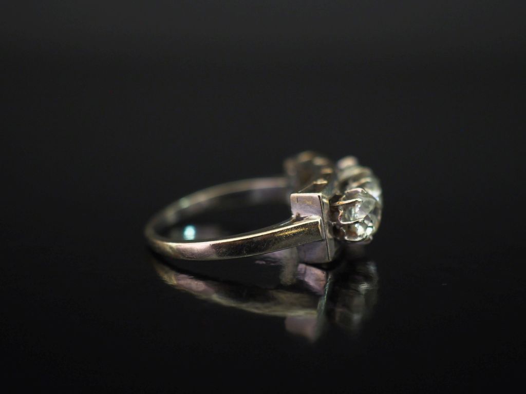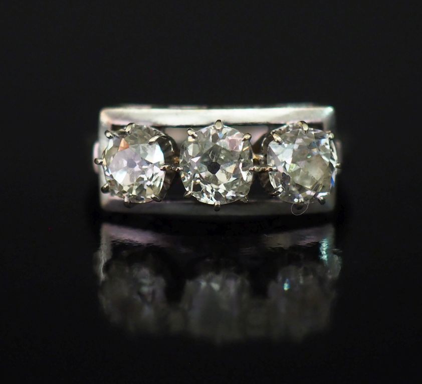 Bague pont en or blanc 750, sertie de trois diamants taille ancienne de 0,4 ct environ. TDD. 57 Poids tel. 4,91 g
