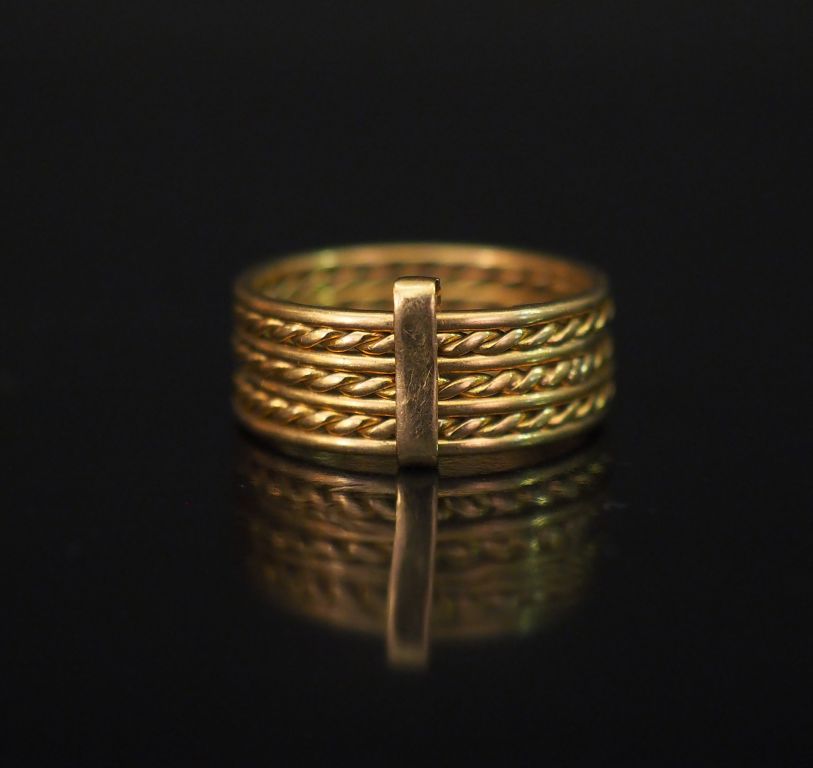Bague semainier en or jaune, composée d'anneaux torsadés et lisses alternés. TDD. 51 Poids. 4,54 g