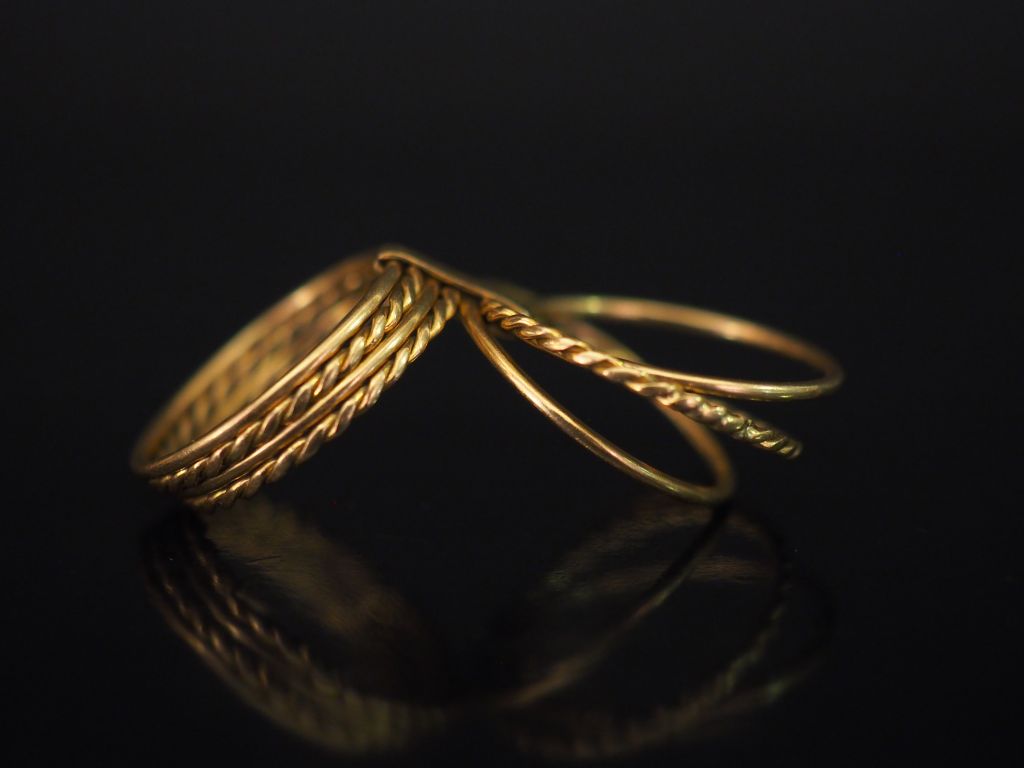 Lot de Bague semainier en or jaune, composée d'anneaux torsadés et lisses alt au prix de 120 à 150 € en vente aux enchères par l'hôtel des ventes Primardeco