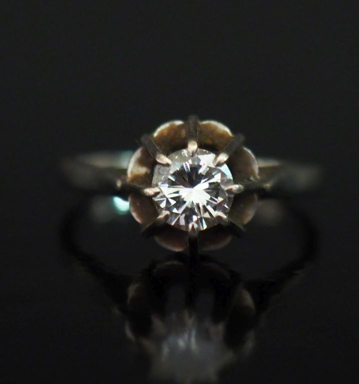 Bague solitaire en or blanc 750, sertie en son centre d'un diamant de 0,4 ct environ. TDD. 50 1/2 Poids tel. 2,81 g