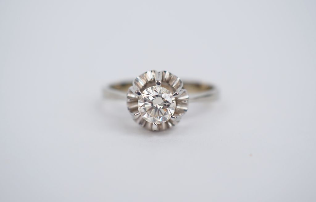 Bague solitaire en or blanc, ornée en son centre d'un diamant taille ancienne de 0,5 ct environ. TDD. 58 Poids tel. 3,60 g