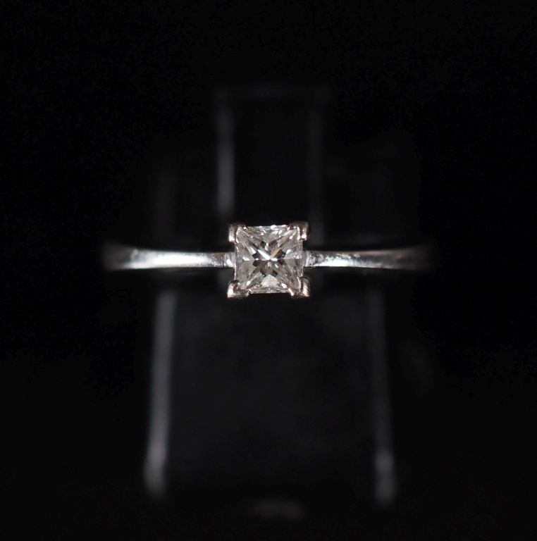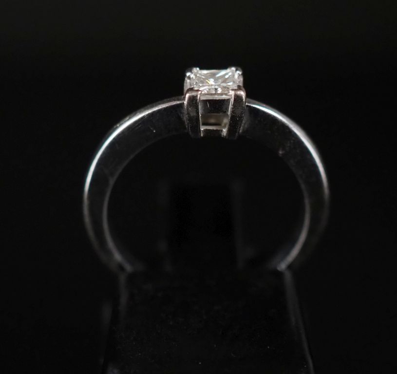 Bague solitaire en or, ornée d'un diamant de forme carrée pesant entre 0,1 et 0,2 cts Poids : 3 g