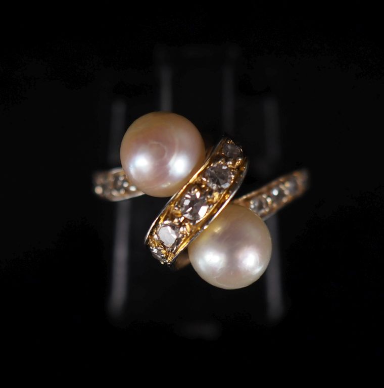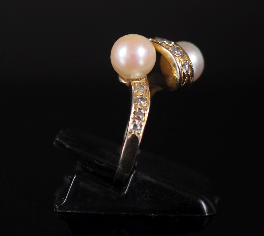 Bague Toi et Moi en or 750, perles et roses Poids tel : 4 g
