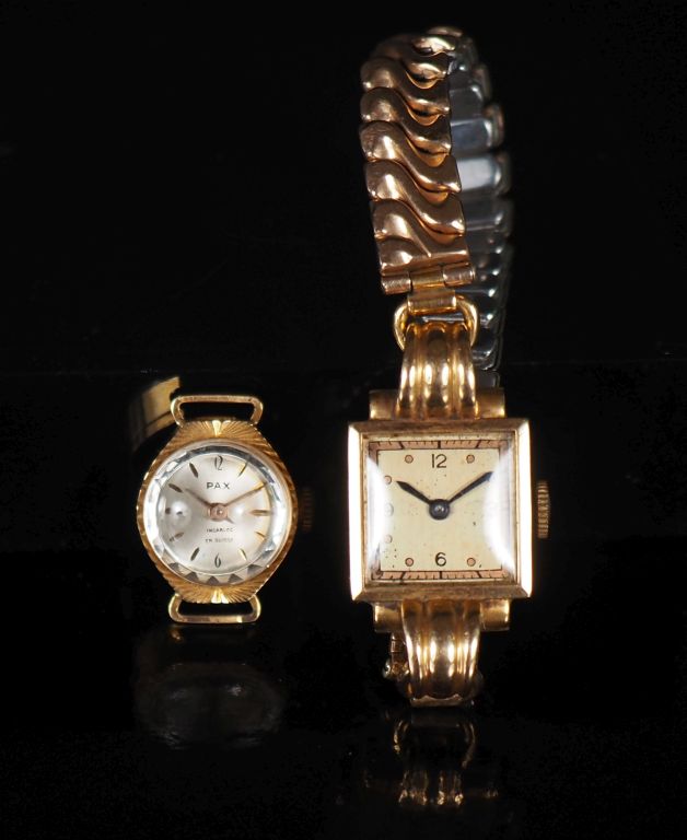 Boitier de montre de dame en or 750 Poids tel : 5,45 g montre de dame 1940, boitier or 750, bracelet métal Poids tel : 23,20 g