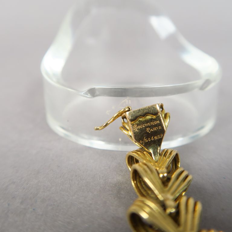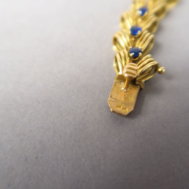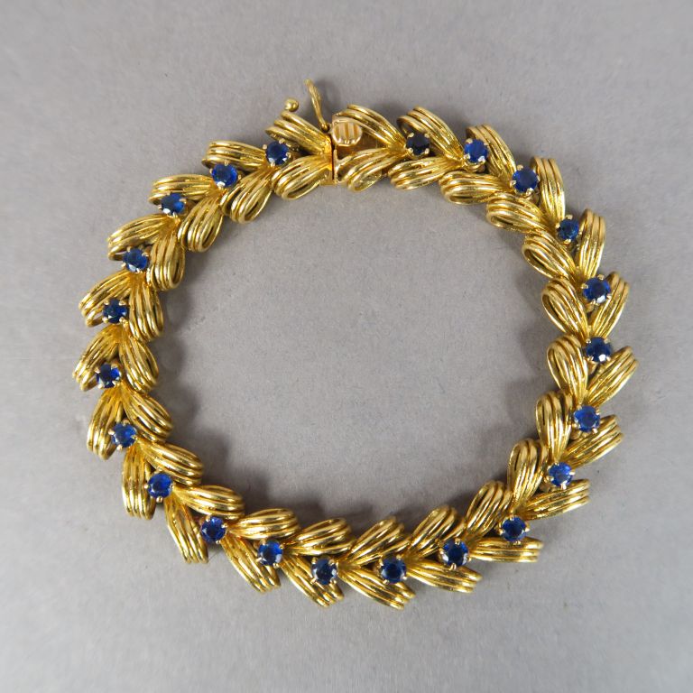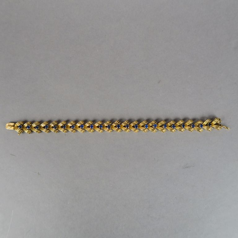 BOUCHERON. Bracelet articulé en or jaune et vingt-deux saphirs. Signé. Long. 18.5 cm Poids tel. 31.33 g