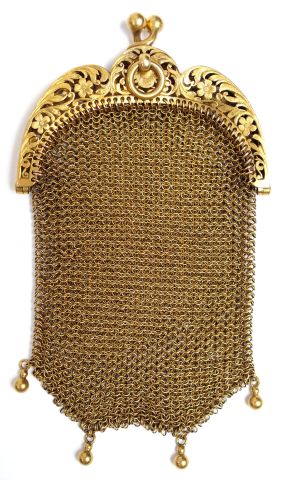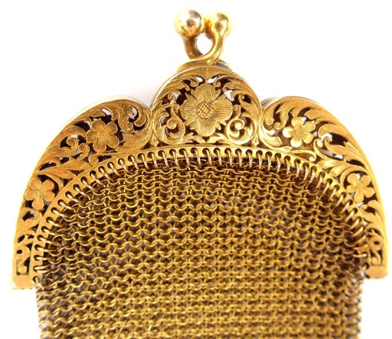 Bourse en or jaune, décor ajouré de fleurs et de feuillage. Poids : 33,04 gr