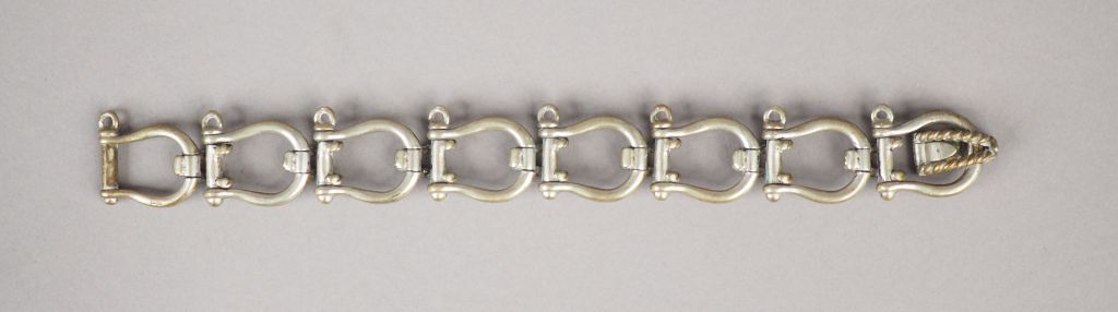 Bracelet articulé en argent, maillons en forme d'étriers. Long. 19,5 cm Poids. 50,86 g