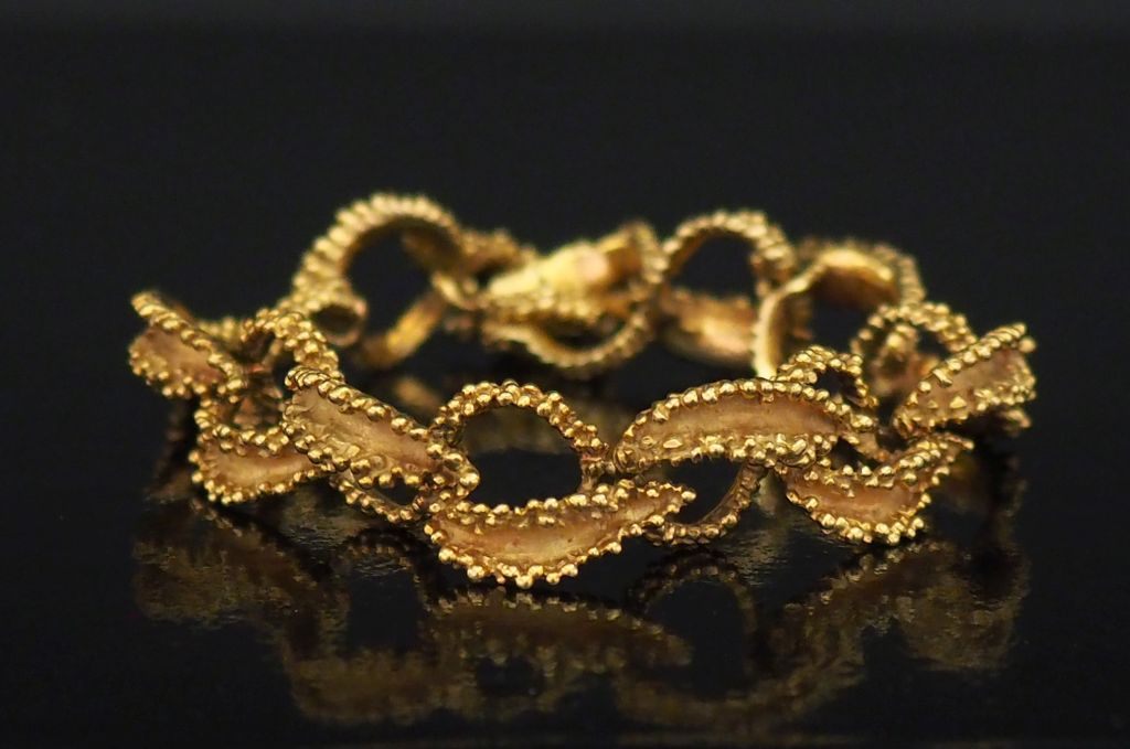 Bracelet articulé en or jaune, à décor ajouré d'entrelacs. Long. 19 cm Poids. 52,30 g