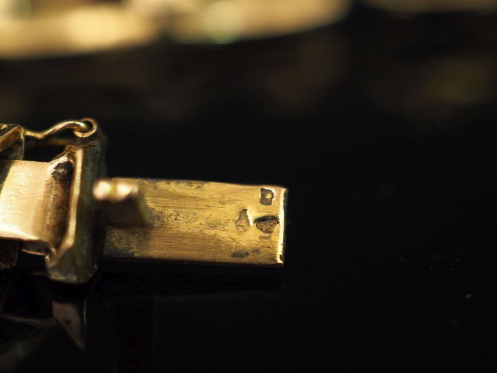 Bracelet articulé en or jaune, composé de maillons de forme bombée, à décor de pastilles. Long. 20,5 cm Poids. 24,71 g