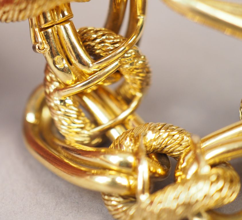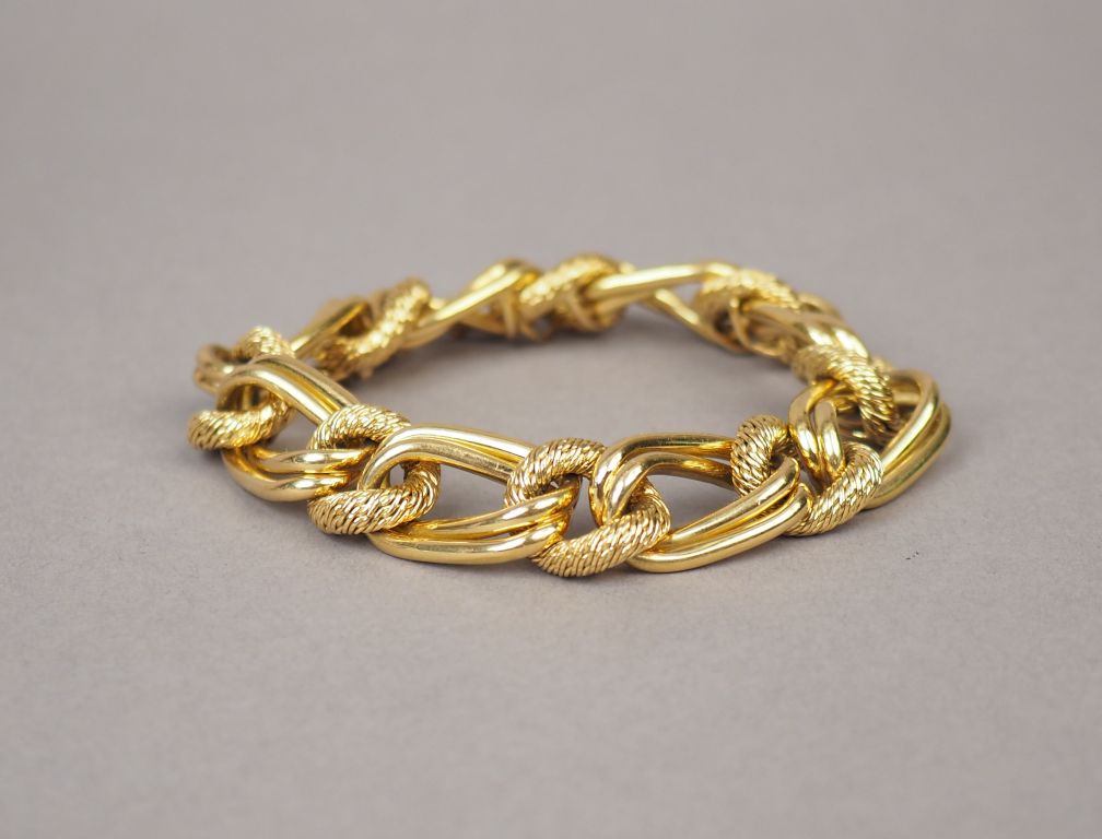 Bracelet articulé en or jaune, maillons ronds tressés et ovales à double rangs alternés. Long. 22 cm Poids. 72,77 g
