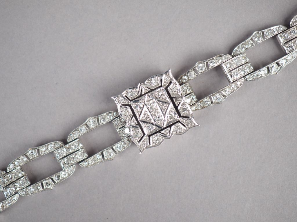 Bracelet de style 1940 en or blanc et diamants. Long. 17,5 mm Poids tel. 28,92 g