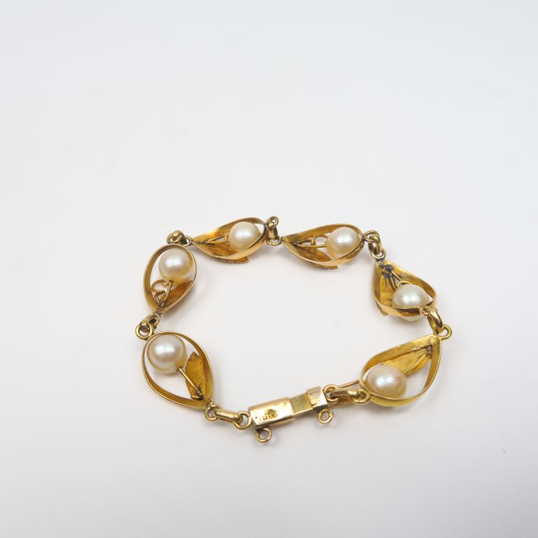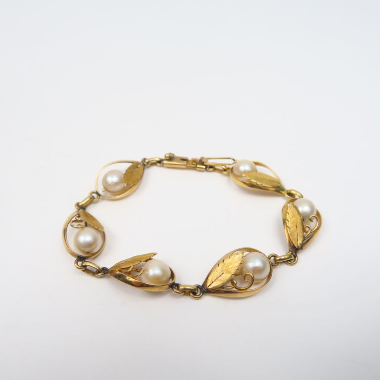 Bracelet de style Art Nouveau en or jaune et perles. Poids tel. 11,60 g