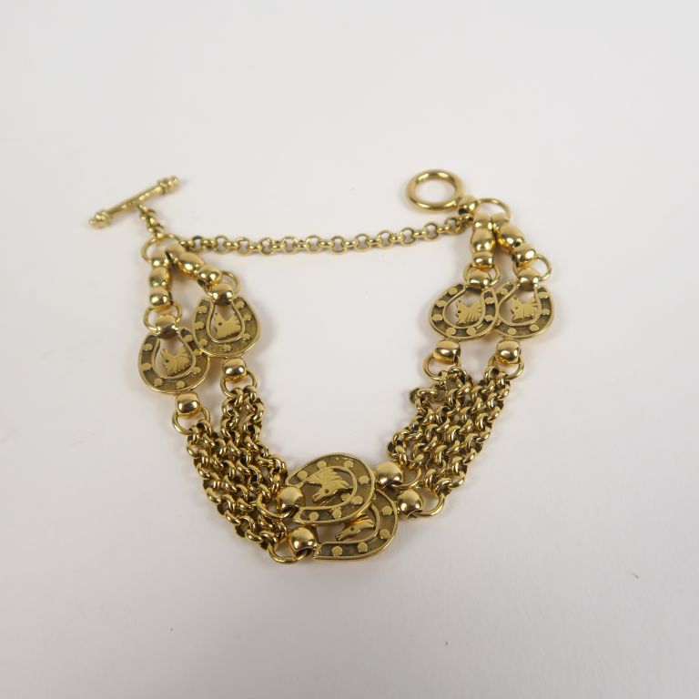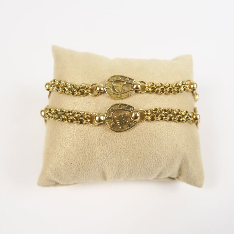 Bracelet double en or jaune, à décor de fers à cheval. Poids. 43,08 g