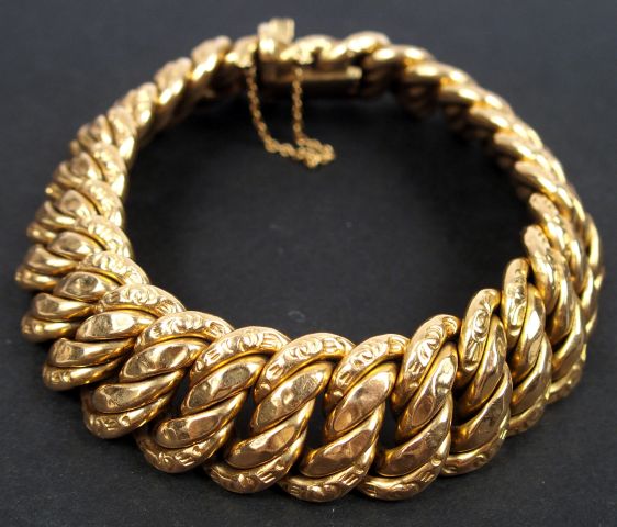 Lot de Bracelet en or jaune, maille gourmette. Poids : 51,62 gr au prix de 800 à 1000 € en vente aux enchères par l'hôtel des ventes Primardeco