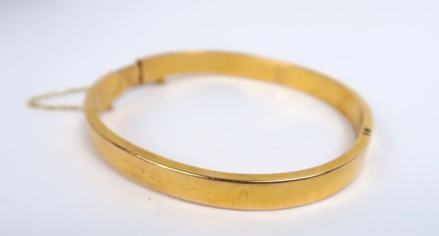 Bracelet jonc à charnière en or 14 carats. Poids : 10,2 g (légers enfo...