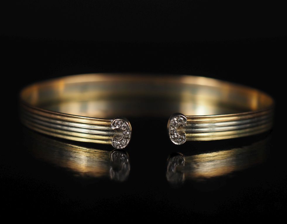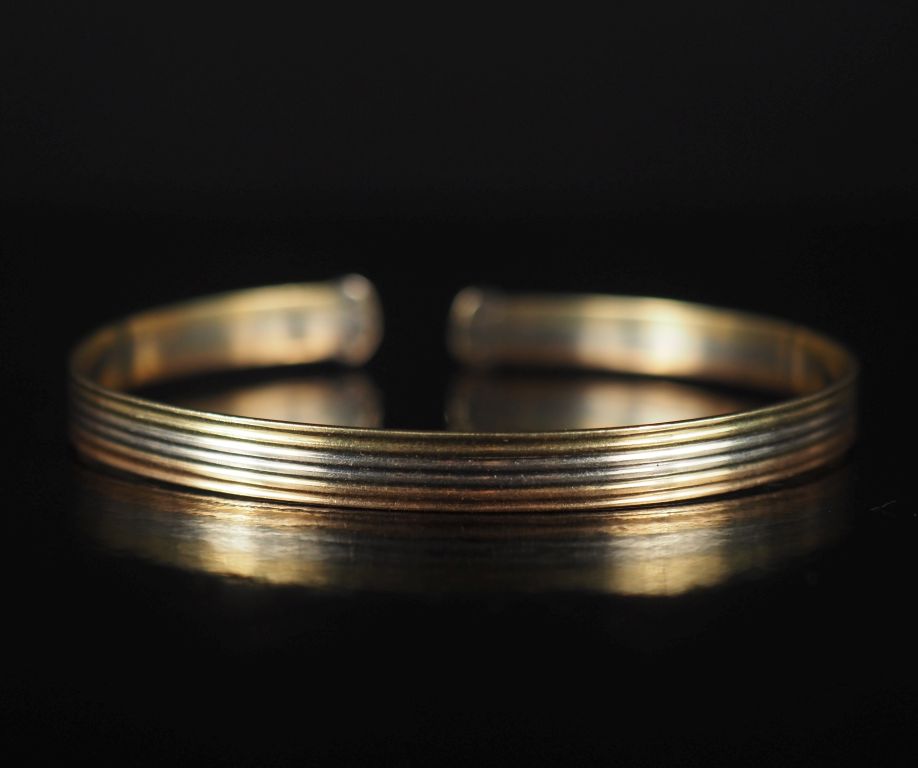 Bracelet jonc en or 750, trois tons et roses Poids : 10,40 g
