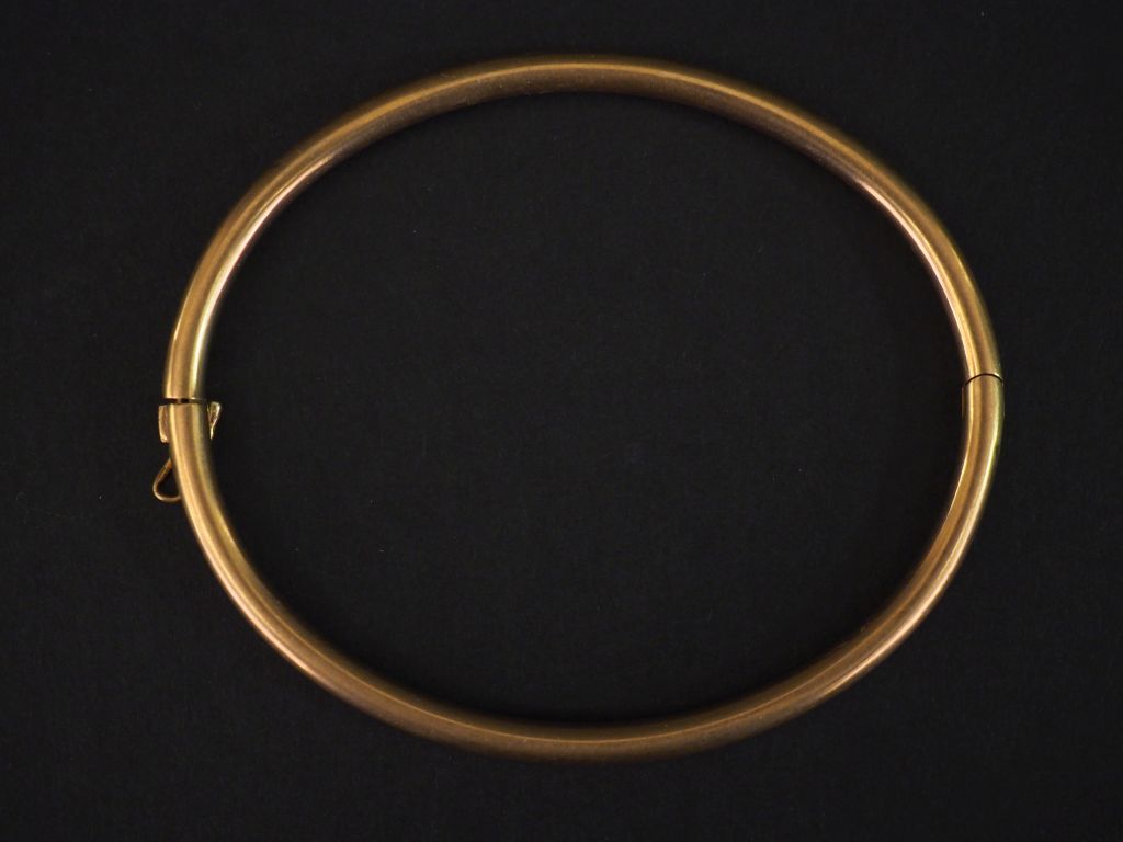 Bracelet jonc en or jaune. 5 x 6 cm Poids. 6,49 g (petits enfoncements, sécurité à revoir)