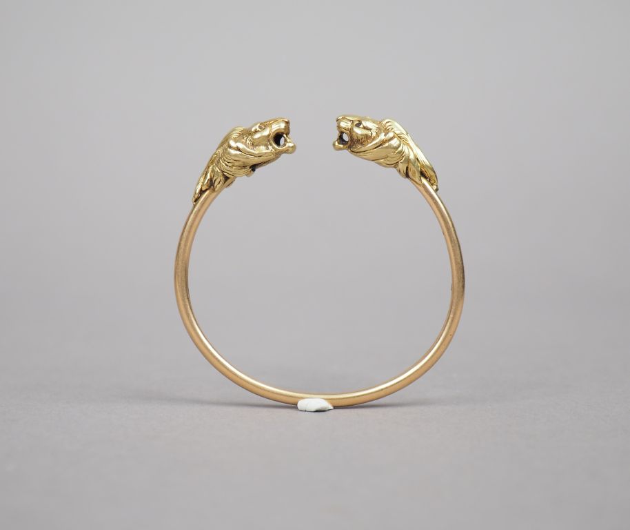 Bracelet jonc en or jaune, à décor de deux têtes de lion. Poids. 21,78 g (à charge de contrôle)