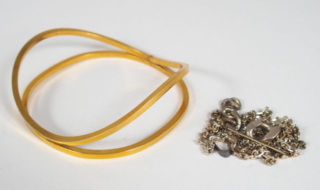 Bracelet jonc moderne en métal doré. On y joint des débris d'argent. Poids: 12,1gr