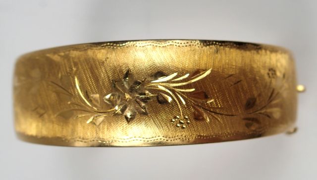 Lot de Bracelet jonc Napoléon III en or, à décor gravé de fleurs. Poids : 28 au prix de 450 à 550 € en vente aux enchères par l'hôtel des ventes Primardeco