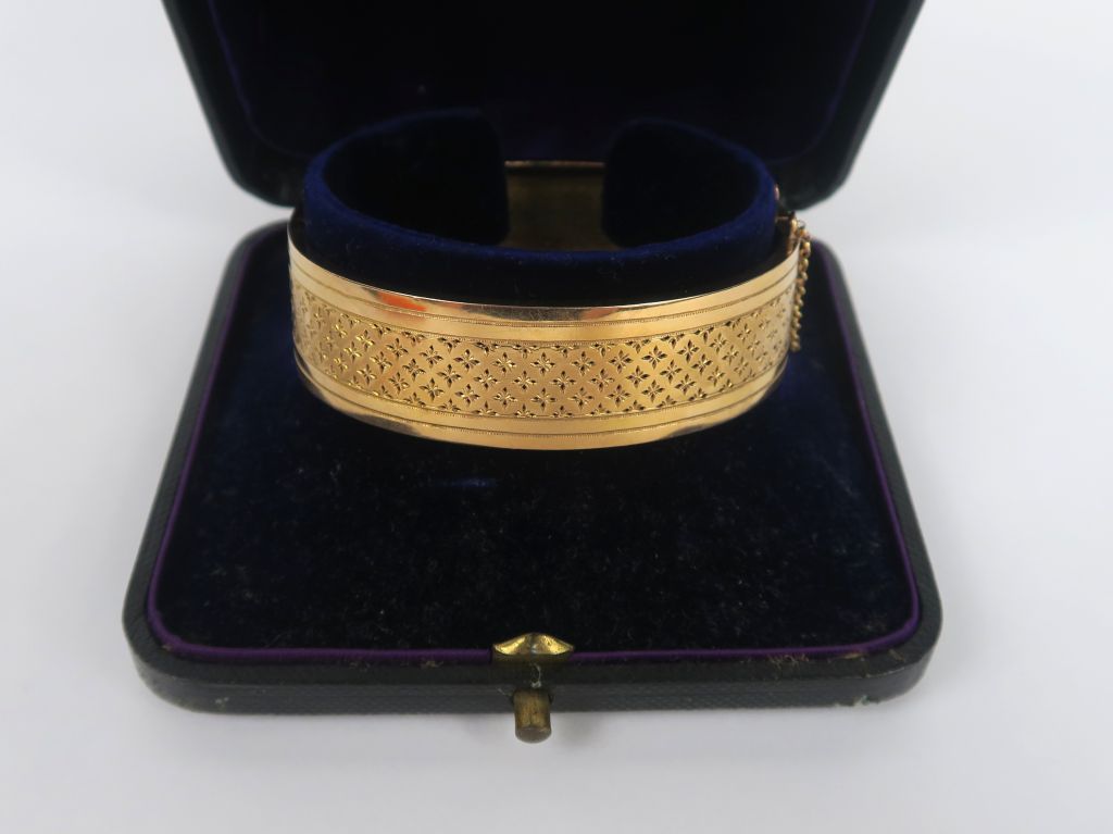 Bracelet manchette Napoléon III en or. Dans son écrin. Poids : 19,2 g