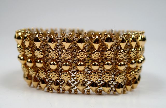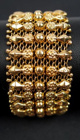 Bracelet Napoléon III en or, décor de perles et de losanges (on y joint une chute). Poids : 46,70 gr