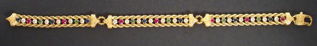 Bracelet or jaune et alternance de pierres à l'imitation du diamant, du saphir, de l'émeraude et du rubis. 19cm environ Poids tel: 17,1gr
