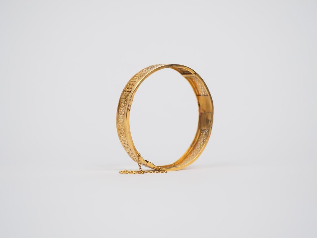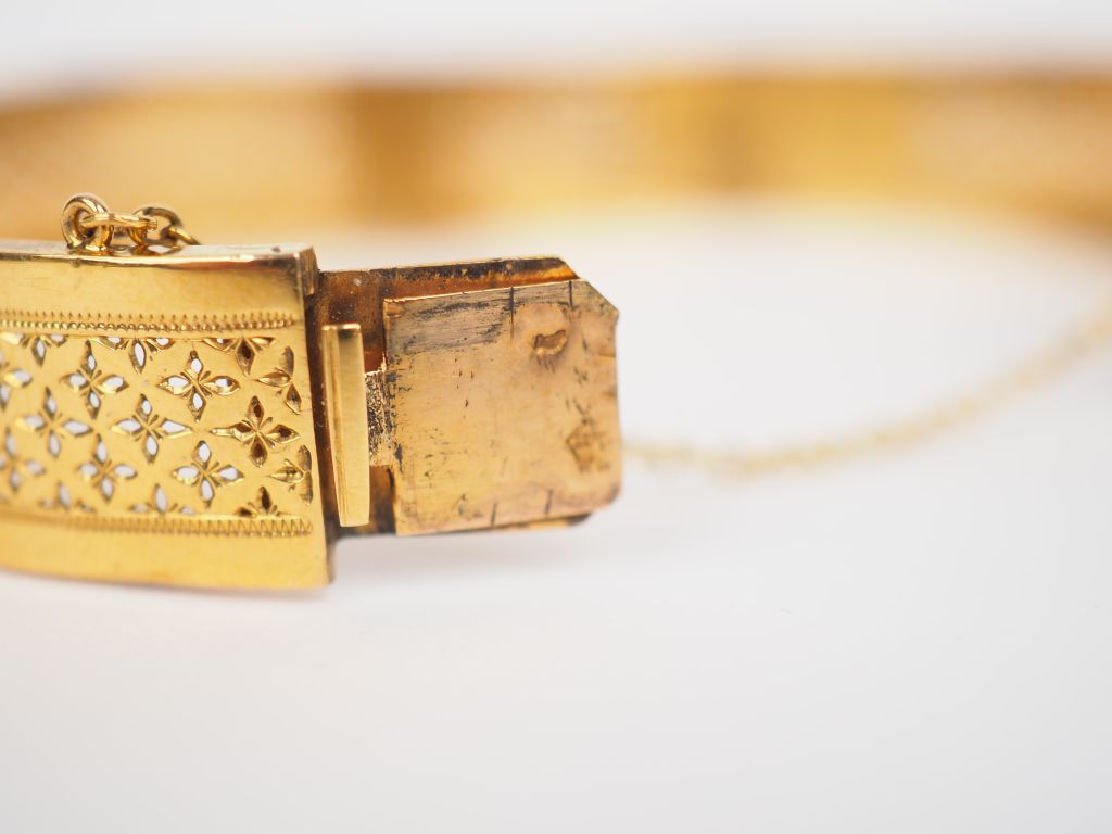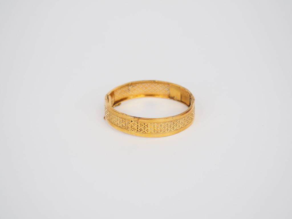 Bracelet rigide en or jaune, à décor ajouré. Poids. 11,89 g (petits accidents)