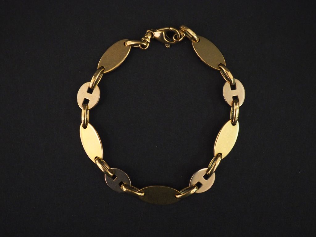 Bracelet souple en or,composé de maillons ronds et maillons ovales alternés. Long. 18 cm Poids. 11,18 g (petit accident)