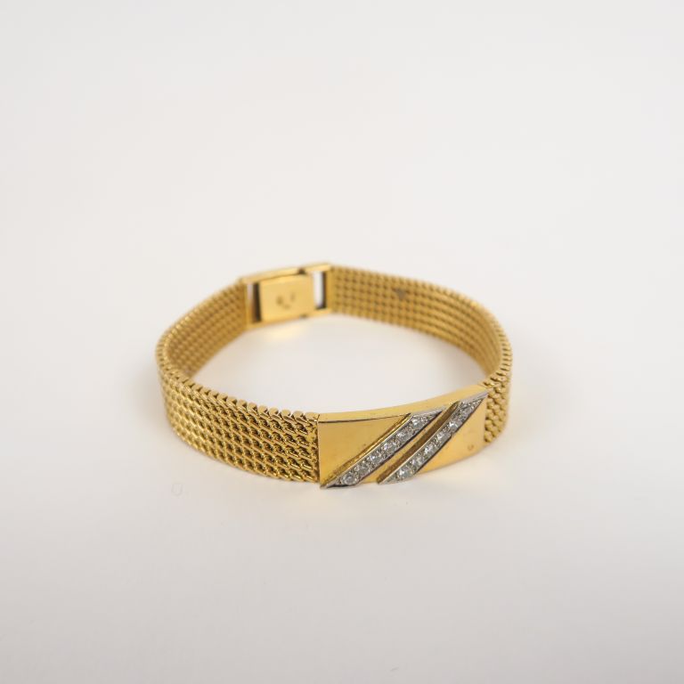 Bracelet souple en or jaune et deux lignes de brillants. Poids. 30 g