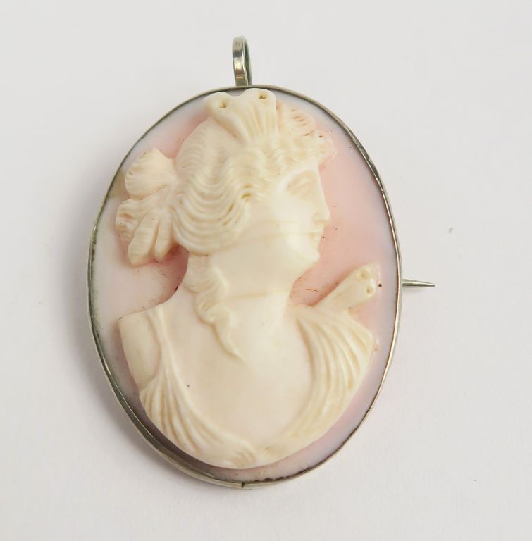 Broche camée, monture en argent.