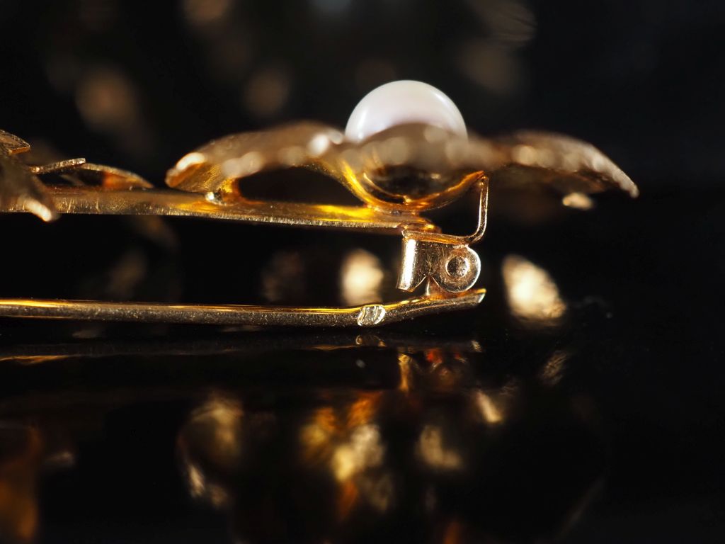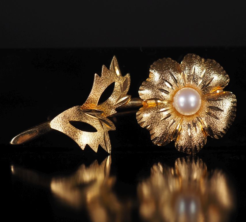 Broche en or 750 et perle en forme de fleur Poids tel : 3,35 g