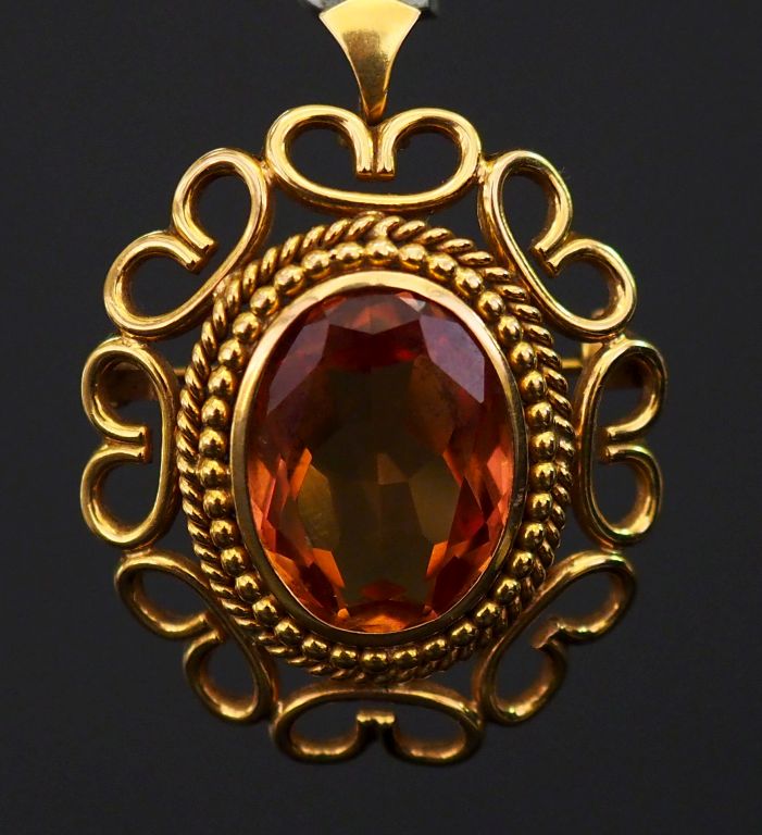 Broche en or et topaze, monture à décor d'entrelacs. Poids tel : 8,30 ...