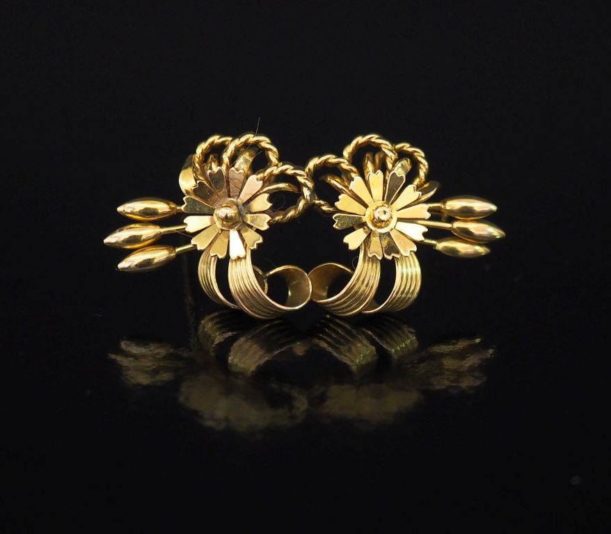 Lot de Broche en or jaune, en forme de composition florale. 2,3 x 5 cm Poids au prix de 200 à 300 € en vente aux enchères par l'hôtel des ventes Primardeco