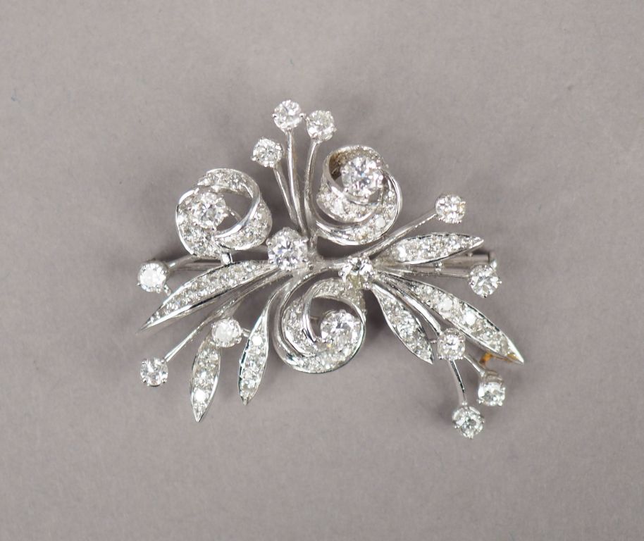 Broche gerbe en or blanc et diamants. Poids tel. 13,13 g