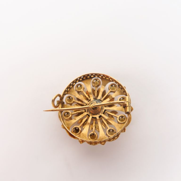 Broche Napoléon en or jaune à décor de perles. Poids tel. 4 g
