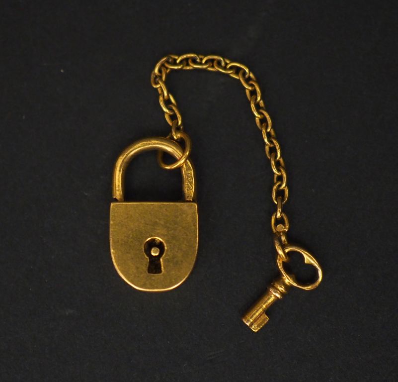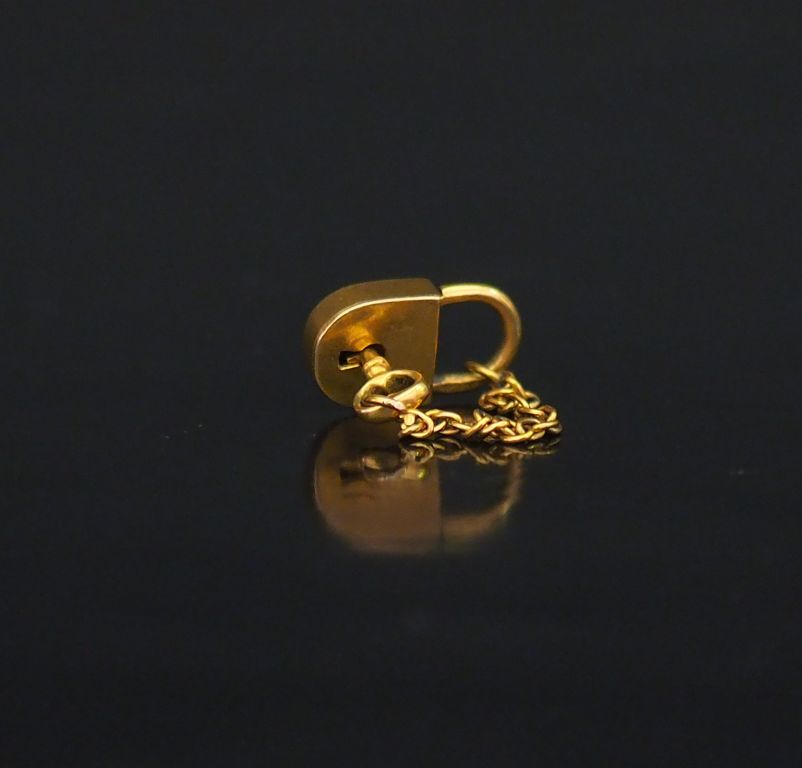 Cadenas et sa clé en or jaune. H. 1,3 cm Poids. 1,58 g