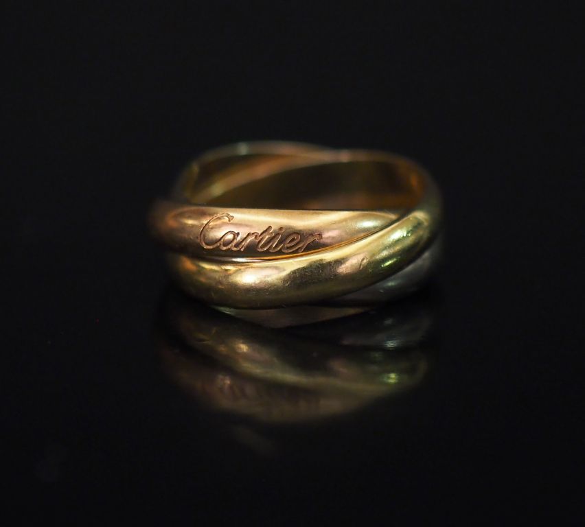 Lot de CARTIER, Trinity Bague trois anneaux en or de trois couleurs. Signée au prix de 250 à 350 € en vente aux enchères par l'hôtel des ventes Primardeco