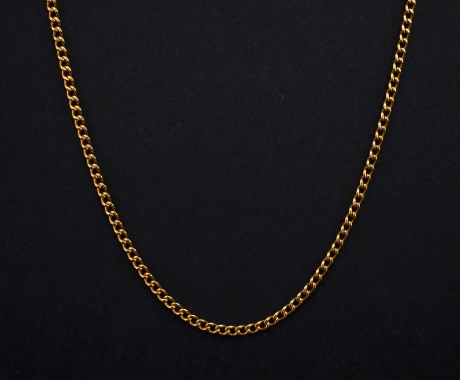 Chaine en or jaune 750, maille gourmette. Long. 54,5 cm Poids. 3,65 g (fermoir en métal défectueux)
