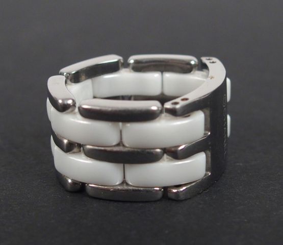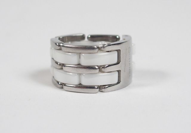 Lot de CHANEL, modèle Ultra. Bague souple grand modèle, en céramique blanc et au prix de 800 à 1000 € en vente aux enchères par l'hôtel des ventes Primardeco