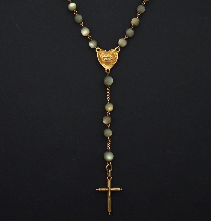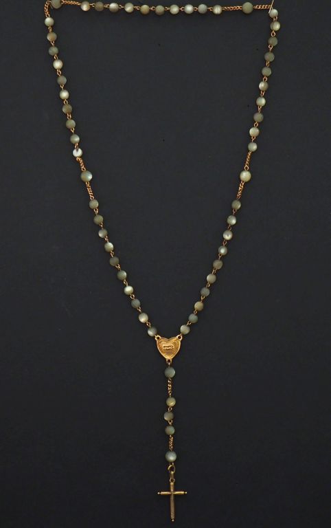 Chapelet en or jaune 750 et perles à l'imitation de la nacre. Long. 32 cm Poids tel. 12,72 g