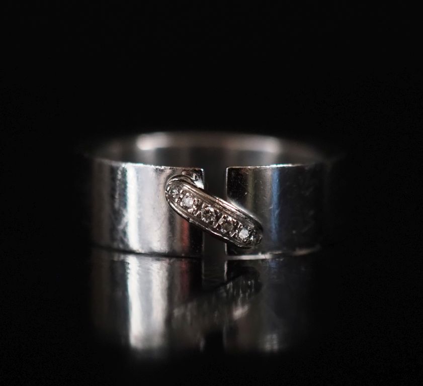 CHAUMET. Bague en or blanc, ligne de petits diamants, modèle "lien" Poids : 10,18 g