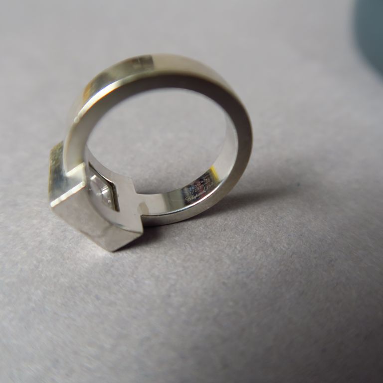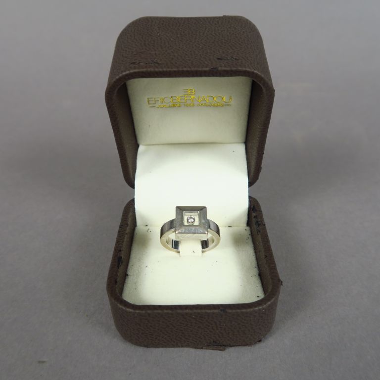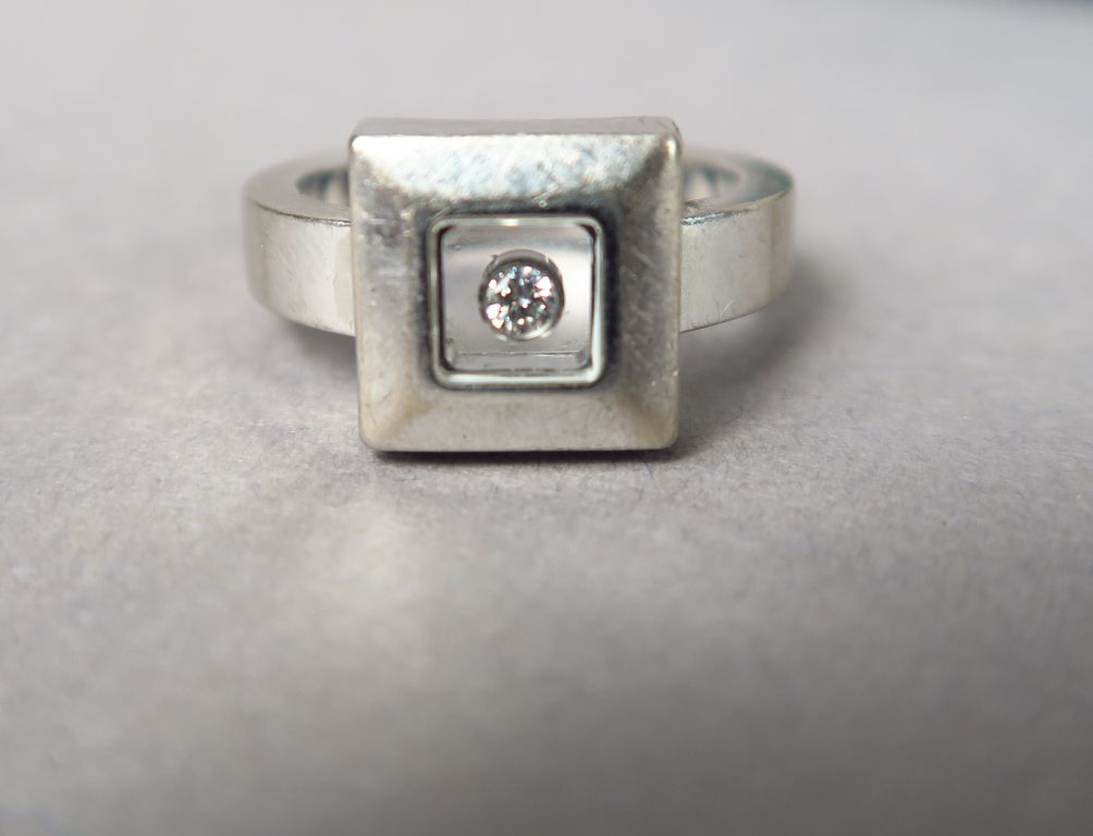 CHOPARD. Bague en or blanc ornée d'un petit diamant. Signée. TDD. 50 Poids tel. 11,44 g