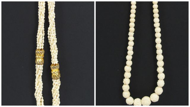 Collier de 8 rangs de perles d'eau douce et collier en perles d'ivoire...