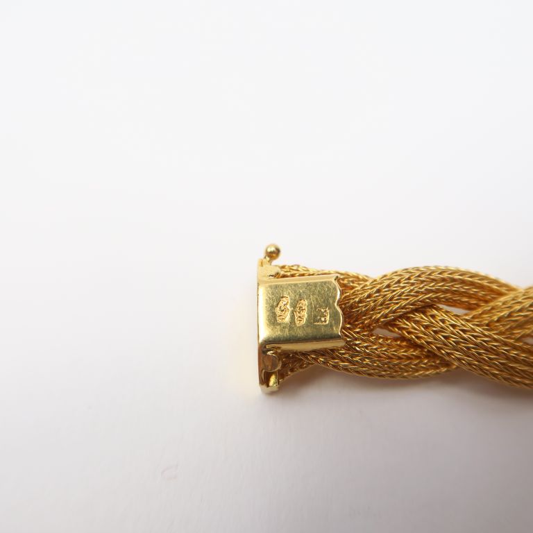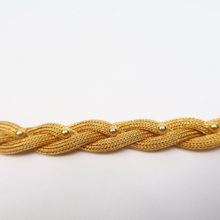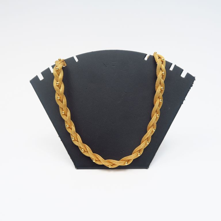 Collier en forme de tresse ornée de perles en or jaune. Poids. 56 g