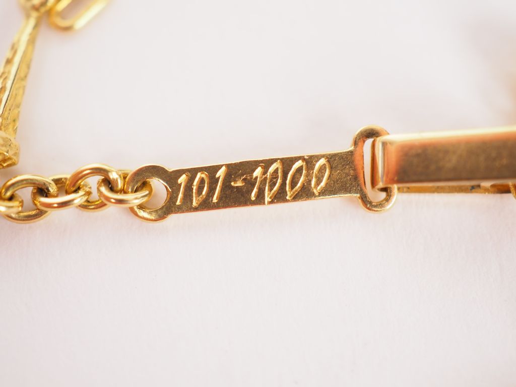 Collier en or jaune, à décor de clous. Signé Dali. Numéroté 101-1000 Une partie de la chaine amovible permettant de porter le collier de différentes longueurs. Poids. 18,53 g