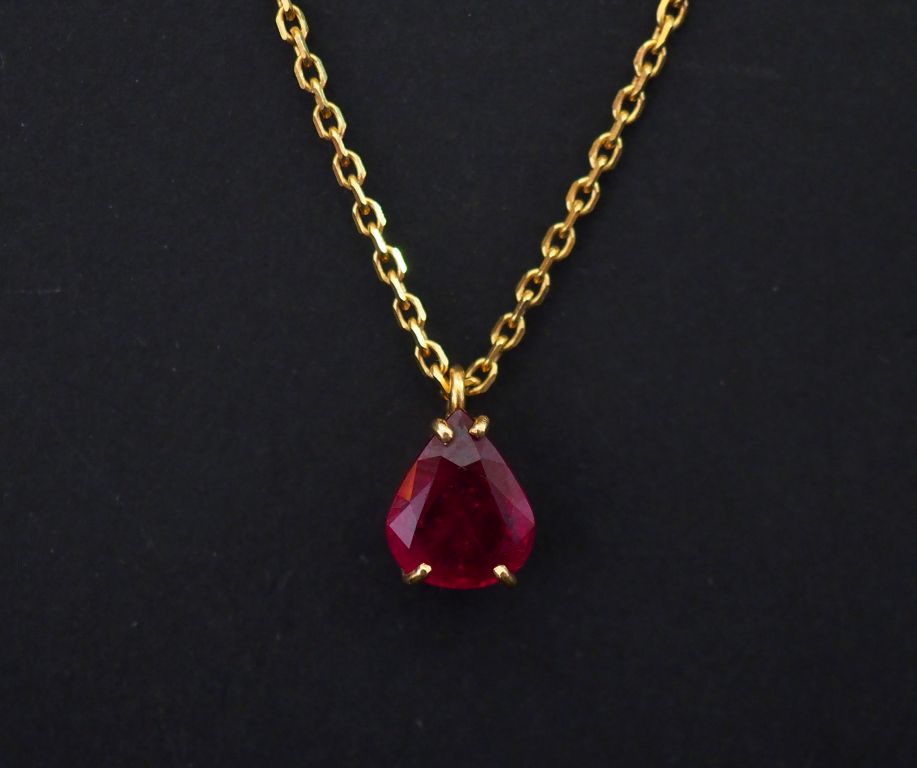 Lot de Collier en or, pendentif pierre rouge. Poids tel. 4,40 g au prix de 80 à 120 € en vente aux enchères par l'hôtel des ventes Primardeco
