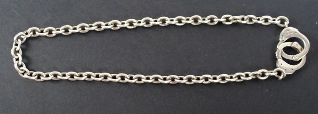 Collier ras de cou maillon en argent, fermoir en forme de menottes. 40cm environ Poids: 40,9gr