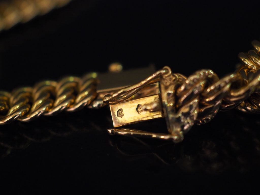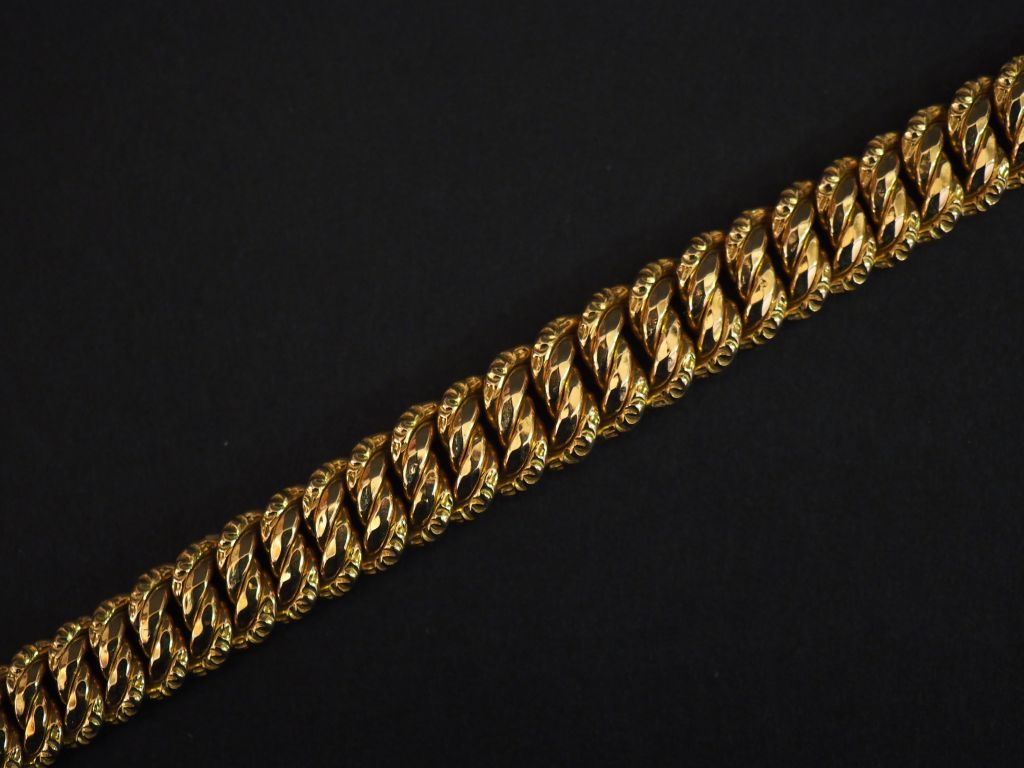 Bracelet manchette souple en or jaune, maille gourmette, agrémenté d'u lot n°2 Estimation : 1 250 - 1 300 €