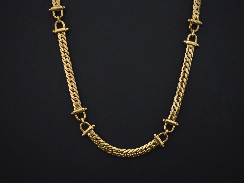 Collier souple en or jaune, maille anglaise alternée de motifs d'étriers. Long. 43,5 cm Poids. 25,24 g